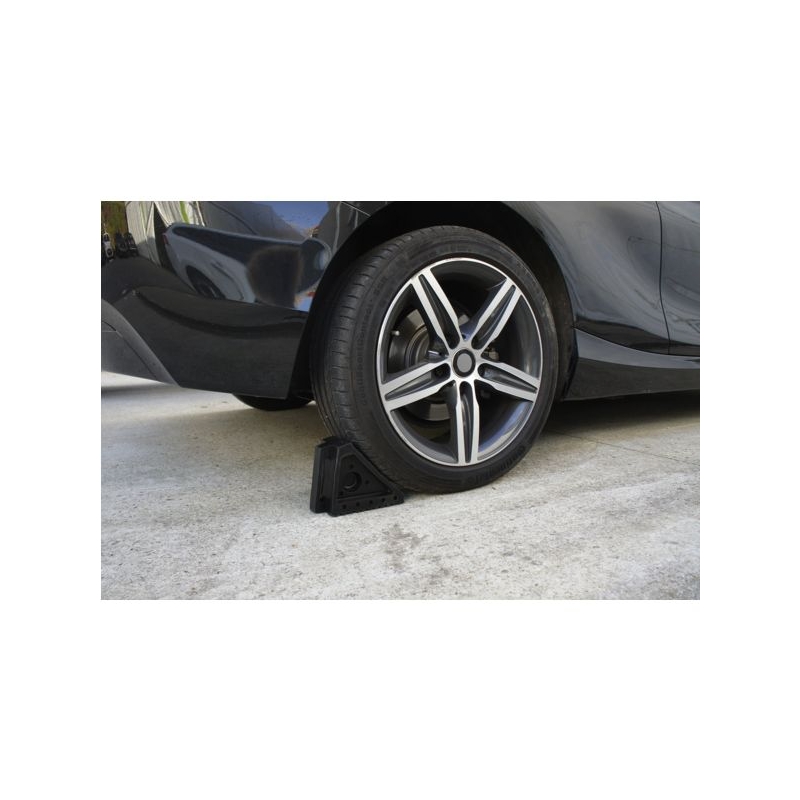 Butée de roue pour véhicule léger ou poids lourd et autocar. Réf. 300246 et 36951 fabriquées en caoutchouc dur résistant aux UV, huile et sel. Réf. 306617 fabriquée en PEHD. Excellente adhérence au sol et au pneu. Facile à manipuler et à ranger grâce à une sangle ou poignée de préhension solide.