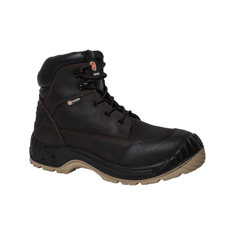 Tige cuir pleine fleur & renfort en cuir croûte enduite. Doublure textile. Première de propreté amovible en textile et mousse antibactérienne. Semelle d'usure en mélange caoutchouc /PU. Embout de sécurité en composite. Semelle antiperforation en fibres haute ténacité. Poids : 789 g Coloris : marron Pointure : 39 à 48 Norme : CE Cat II - EN ISO 20345 - S3 CI HI HRO SRC