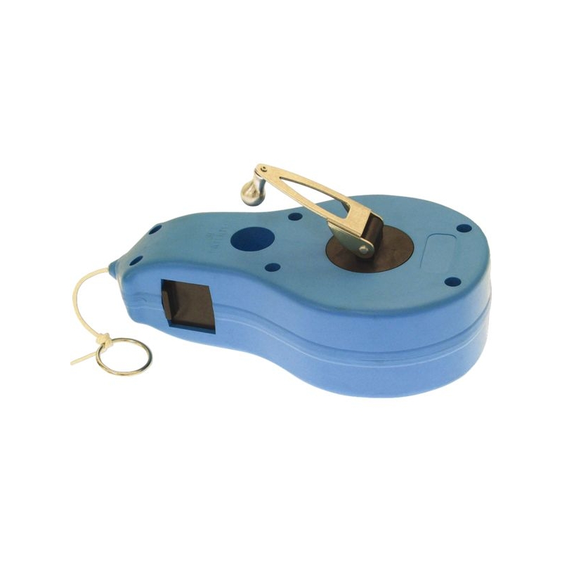 Boîtier plastique, manivelle en acier. Corde polycoton tressé. Longueur : 30 m