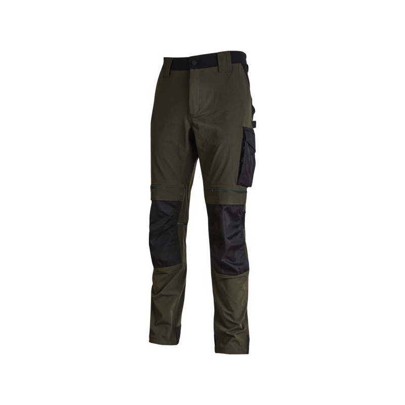 90% nylon, 10% spandex, 260 gr/m2. Tissu stretch, doux au toucher, déperlant, respirant, séchage rapide. Taille élastiquée, bavette à larrière pour une meilleure protection lombaire. Poches latérales porte-outils, multifonction avec porte badge rétractable, 2 poches arrières, poches zippées sous une grande poche latérale. Emplacements pour genouillères réf. 103541 (à commander séparément). Bas de pantalon entièrement renforcé en polyoxford 600D. Coloris : noir/jaune, marine/orange Taille : M à 2XL Norme :